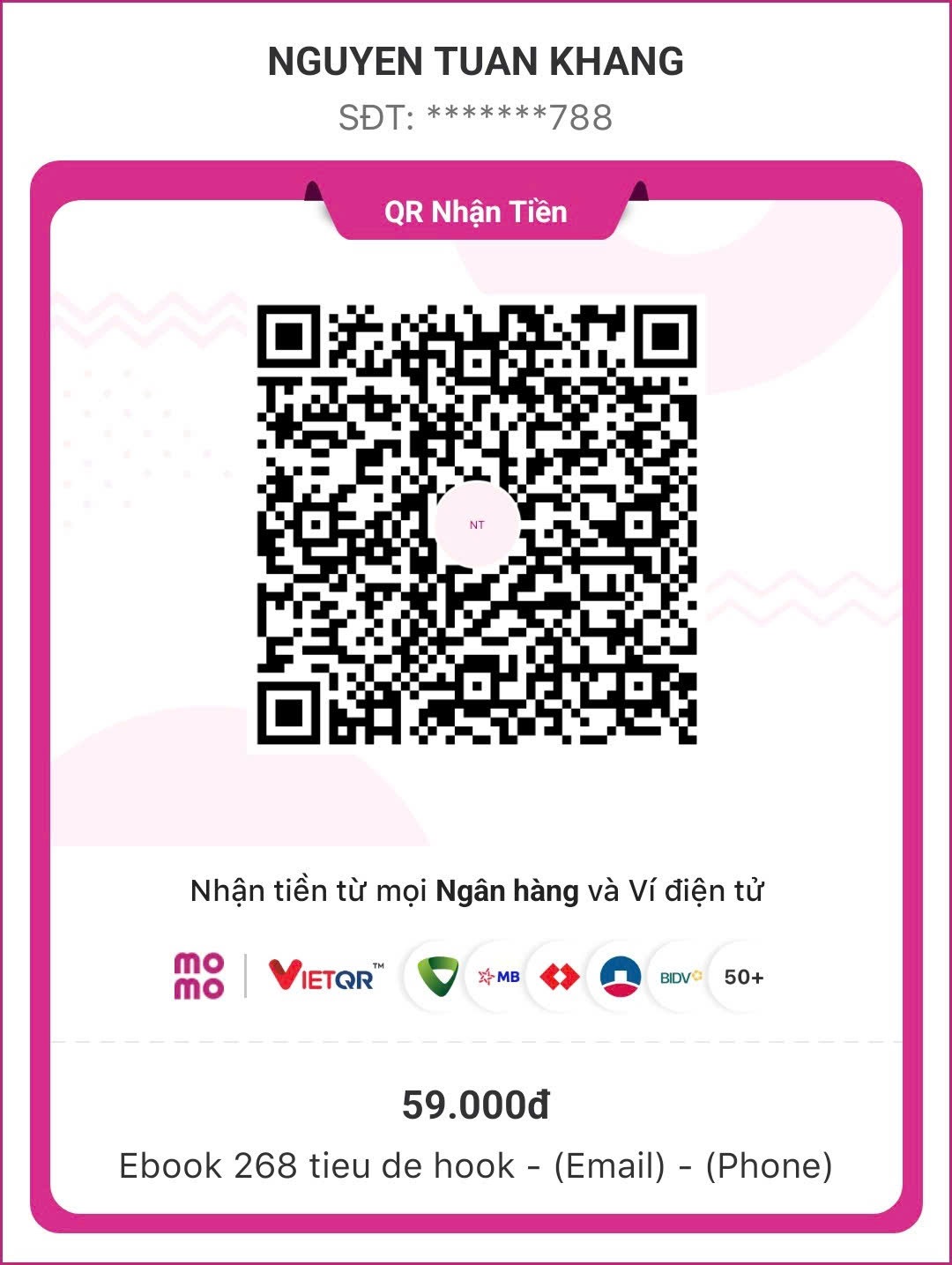 • Nội dung chuyển khoản: Ebook 268 tieu de hook – Phone – Email